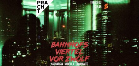 Bahnhofsviertelvorzwölf am 28. März in der Pracht. Ehrliche elektronische Musik. Artists aus den Tiefen der Nacht. Katharsia Mirella Dom Waits (Pracht, Schick, Outro Podcast) Foto by Mobrigado