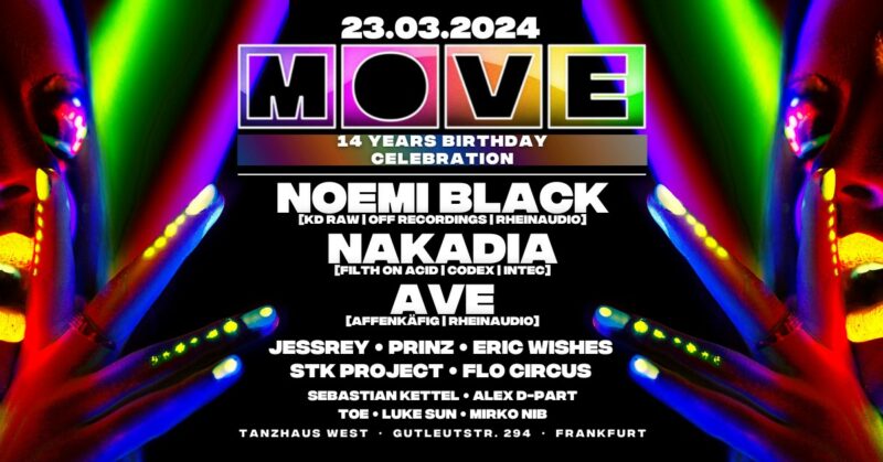 Verlosung: 5× Gästelisteplätze VVK: Friendstickets online bestellen Ja auch die MOVE wird wieder ein Jahr älter, obwohl wir uns noch genauso jung fühlen wie 2010, als wir gestartet sind. Lasst uns feiern, tanzen und ein bisschen eskalieren. Thank you for 14 years support! Noemi Black NAKADIA AVE JessRey Prinz Eric Wishes STK Project Flo Circus